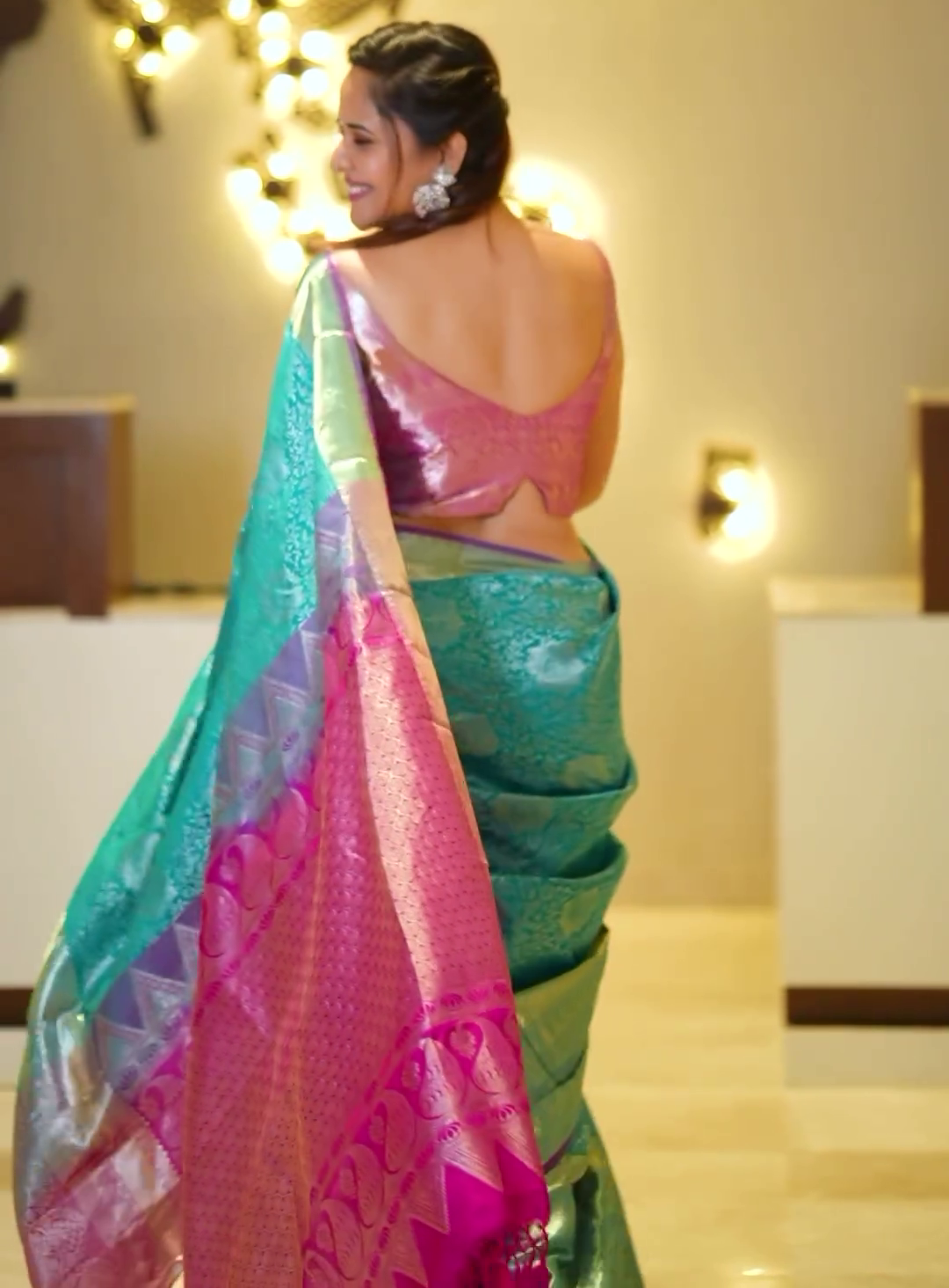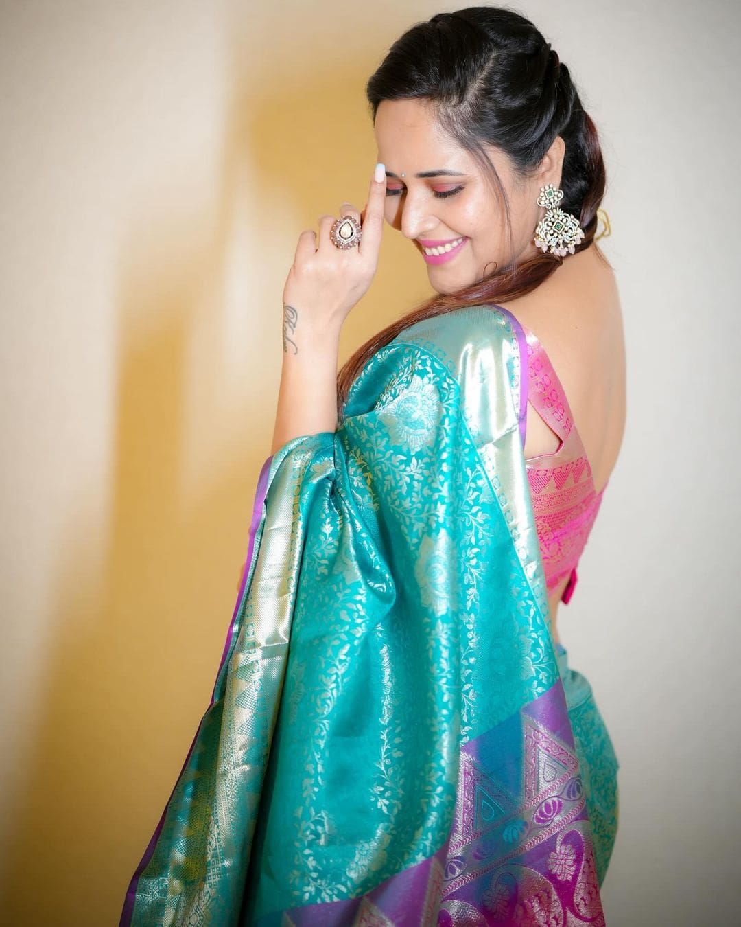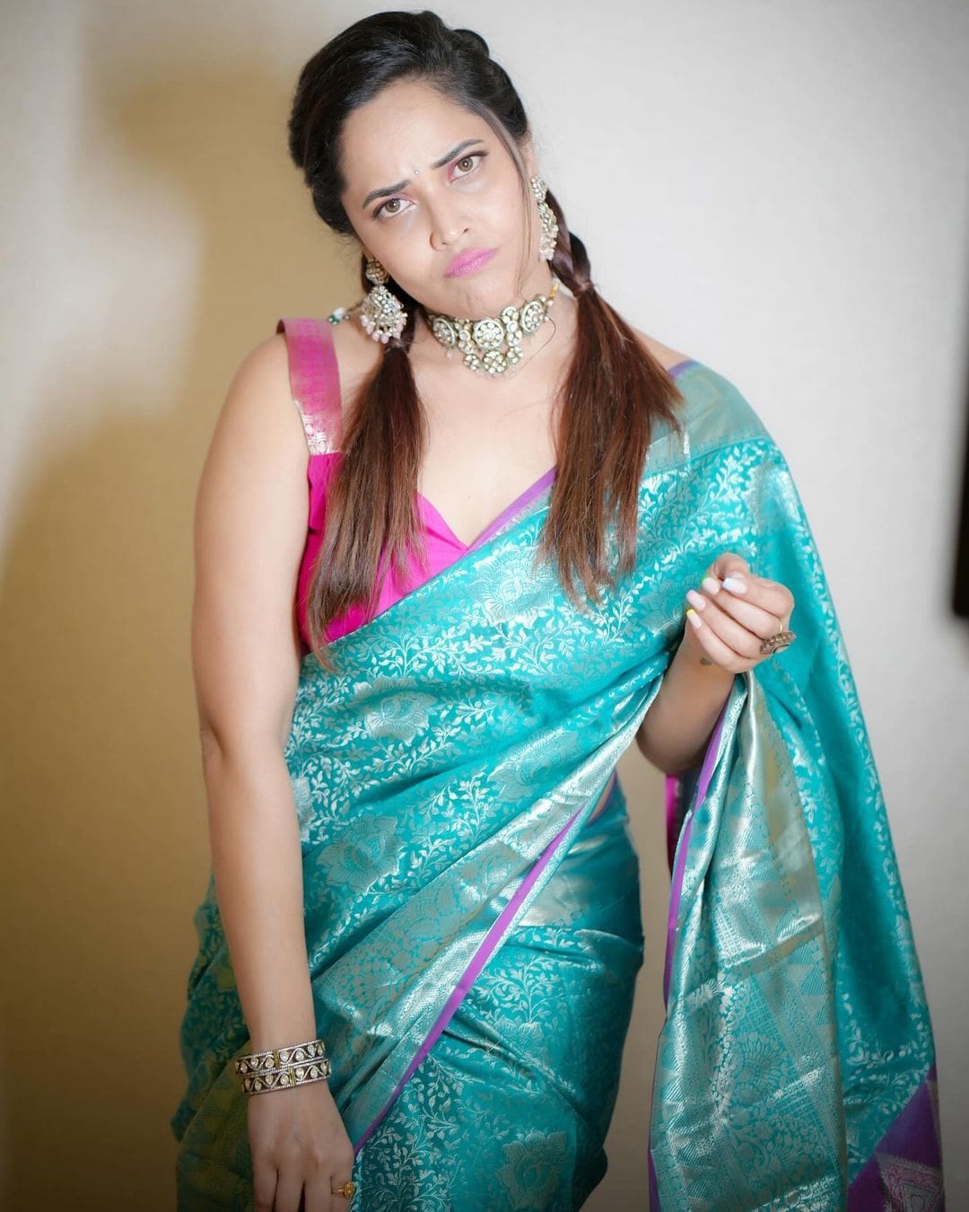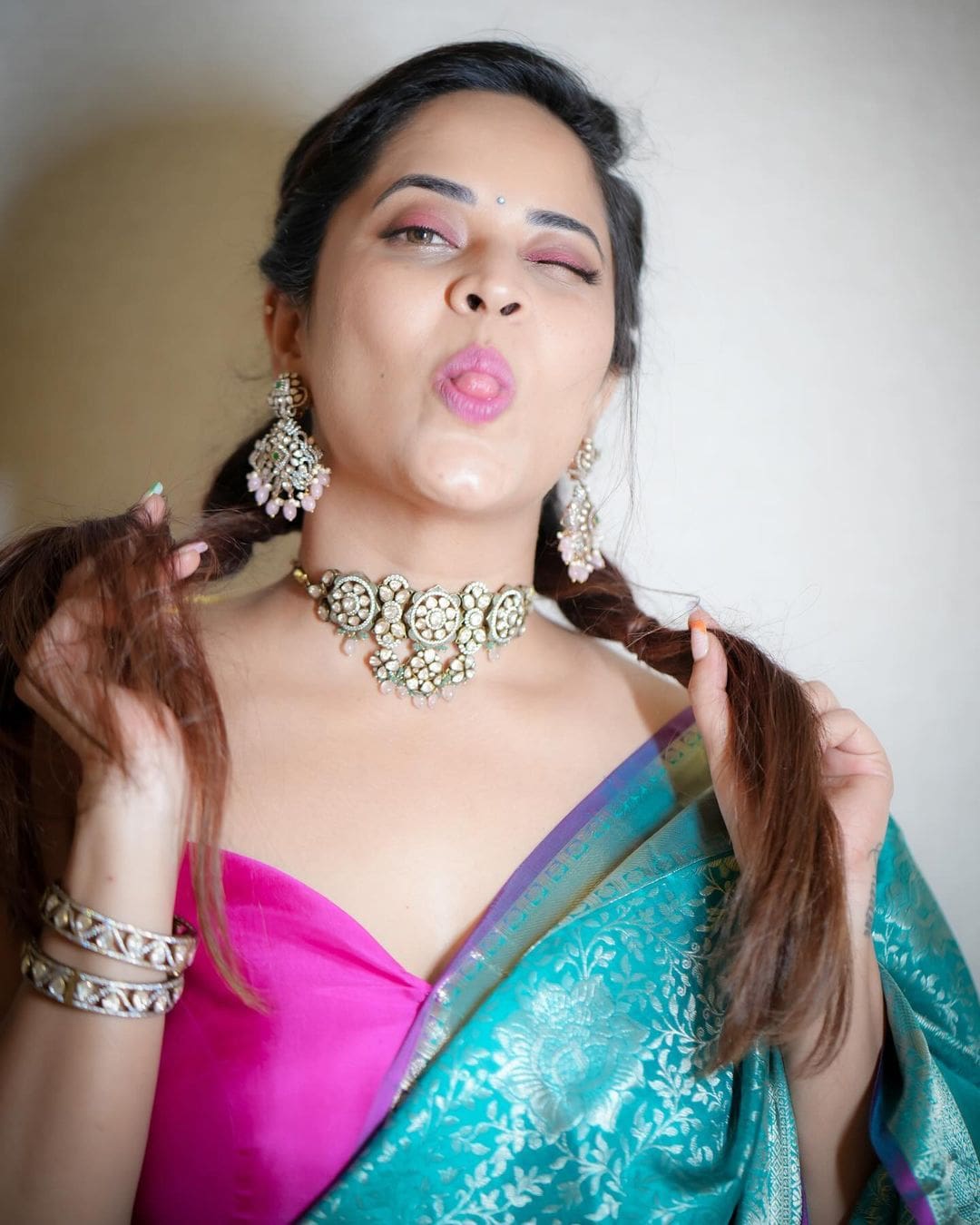 తాజాగా అనసూయ అదిరిపోయే చీర ధరించి రెండు జడలతో సర్ప్రైజ్ చేసింది. చిన్న పాపలా రెండు జడలు వేసుకుని అనసూయ క్యూట్ అండ్ హాట్ గా ఉందంటూ నెటిజన్లు కామెంట్స్ చేస్తున్నారు. అనసూయ అదిరిపోయే ఫోజులు మీరూ చూడాల్సిందే.