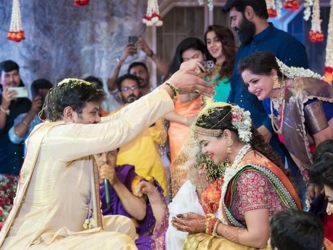 మొత్తానికి నిన్న రాత్రి మంచు మనోజ్ కొత్త జీవితానికి శ్రీకారం చుట్టారు. ఫిలింనగర్ లోని మోహన్ బాబు నివాసంలో ఇరు కుటుంబాలు, సన్నిహితుల సమక్షంలో మనోజ్, మౌనిక ఒక్కటయ్యారు. మాజీ ఎమ్మెల్యేలు భూమా నాగిరెడ్డి, శోభా నాగిరెడ్డిల కుమార్తెనే మౌనిక. కొంతకాలంగా ప్రేమలో ఉన్న వీరు ఇరు కుటుంబాల అంగీకారంతో ఒకటి కాగా ఇద్దరికి ఇది రెండో వివాహమే.