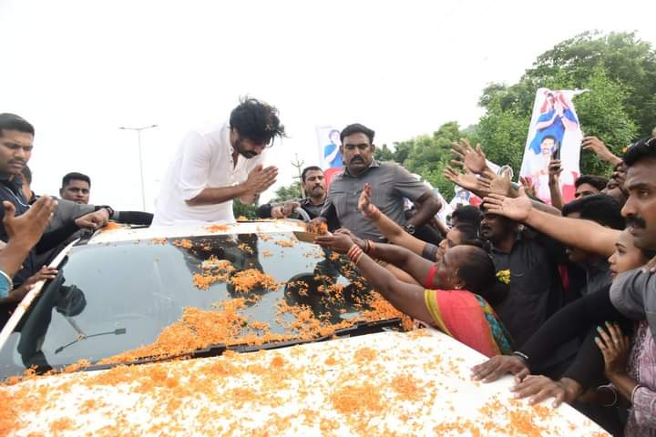 పార్టీ నాయకుల స్వాగత సందోహాల మధ్య అక్కడి నుంచి విశాఖ తూర్పు నియోజకవర్గం మీదుగా భీమిలి బయలుదేరారు. సాగర్ నగర్, రామాద్రి నగర్, నరసింహనగర్ తదితర ప్రాంతాల్లో జనసేన శ్రేణులతో పాటు ప్రజలు పెద్ద సంఖ్యలో రోడ్ల మీదకు వచ్చి పవన్ కళ్యాణ్ గారికి జేజేలు పలికారు. సంప్రదాయ డప్పు శబ్దాలు, వందలాది ర్యాలీ మధ్య సుమారు రెండు గంటల పాటు రోడ్ షో నిర్వహించారు.