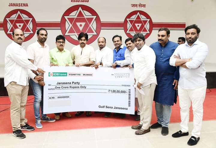 ఇలాంటి పరిస్థితులన్నింటినీ అధిగమించి ఒక తరం కోసం నా ఆఖరి శ్వాస వరకు నా నేల కోసం పని చేయడానికి రాజకీయాల్లోకి వచ్చానని తెలిపారు. గల్ఫ్ దేశాలకు చెందిన ఎస్ఆర్ఎస్ఐ జన సైనికులు పార్టీకి రూ.కోటి విరాళం అందచేశారు, కౌలు రైతు భరోసా యాత్ర నిమిత్తం మరో రూ.లక్షా 10 వేల చెక్కును పవన్ కళ్యాణ్ గారికి అందచేశారు, ఈ సందర్భంగా పవన్ కళ్యాణ్ గారు మాట్లాడుతూ జనసేనకు ఎస్ఆర్ఎస్ఐ విభాగం మద్దతు అవసరం.