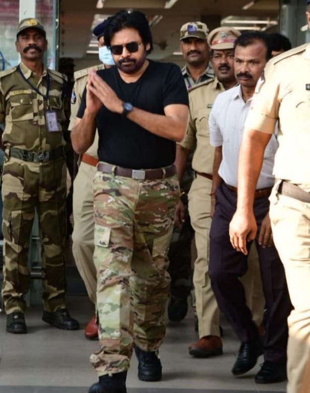 కృష్ణాజిల్లా మచిలీపట్నంలో నిర్వహించడానికి సిద్ధం అయ్యారు. ఇందులో భాగంగా జనసేనాని పవన్ కళ్యాణ్ కొద్దిసేపటి క్రితమే హైదరాబాద్ నుంచి విజయవాడ చేరుకున్నారు. ఇందుకు సంబంధించిన ఫోటోలు ప్రస్తుతం నెట్టింట వైరల్ అవుతున్నాయి. బ్లాక్ టీ షర్ట్, ఖాకీ ప్యాంట్ తో పవన్ అదిరిపోయే లుక్ లో ఉన్నారు పవన్. ఇదిలా ఉండగా మార్పు మొదలైంది అంటూ జనసైనికులు కామెంట్స్ చేస్తున్నారు.