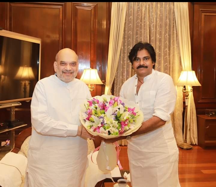 ఈ సందర్భంగా పవన్ కళ్యాణ్ మాట్లాడుతూ.. ఆంధ్రప్రదేశ్ రాజకీయాలపై ఎన్డీఏ సమావేశంలో చర్చ జరగలేదని, దేశ రాజకీయ పరిస్థితుల గురించే ప్రధానంగా చర్చ జరిగింది అని జనసేన అధ్యక్షులు పవన్ కళ్యాణ్ స్పష్టం చేశారు. ఈ నేపద్యంలో నే ఎన్డీయే సమావేశం అనంతరం.. జనసేన పార్టీ అధ్యక్షులు పవన్ కళ్యాణ్, కేంద్ర హోమ్ శాఖ మంత్రి అమిత్ షా గారితో సమావేశమయ్యారు.