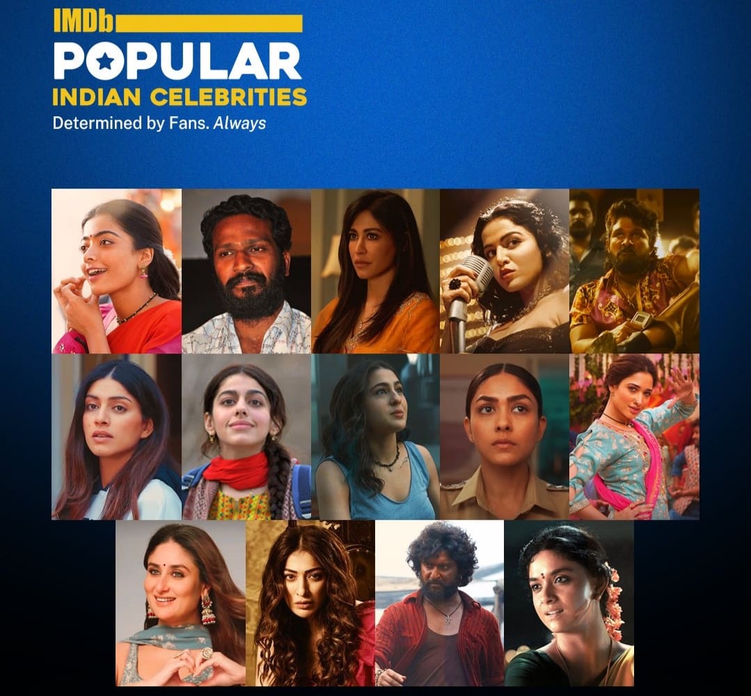సోషల్ మీడియాలో ఎప్పుడూ చురుగ్గా ఉండే రష్మిక తాజాగా ఐఎండీబీ (IMDB) ర్యాంకుల్లోనూ అదరగొట్టింది. పాపులర్ సెల్రబిటీలను వెనక్కి నెట్టి టాప్-3లో నిలిచింది. ఈ విషయాన్ని తెలియజేస్తూ ఐఎండీబీ తన ట్విటర్ వేదికగా ర్యాంకులను విడుదల చేసింది. రష్మిక తొలిసారి టాప్-3లోకి రావడం గమనార్హం.