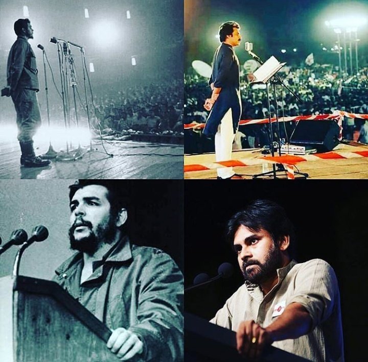 విప్లవ తార చేగువేరా బానిస సంకెళ్లను తెంచే ఆలోచనలకు భౌగోళిక హద్దులుండవు.. విశ్వ మానవుడిగా నీవు మారితే సమస్త మానవాళి ఆక్రందనలు నీకు వినిపిస్తాయి అంటారు క్యూబా విప్లవ యోధుడు చేగువేరా, అర్జెంటీనా దేశంలో పుట్టి, క్యూబా దేశంలో బానిసత్వపు నీడలో మగ్గిపోతున్న పీడిత ప్రజల పక్షాన గెరిల్లా పోరాటం చేసి, తుదకు బొలీవియా పోరాటంలో వీర మరణం పొందిన చేగువేరా స్పూర్తి సదా స్ఫూర్తిదాయకం అని పవన్ కళ్యాణ్ వెల్లడించారు.