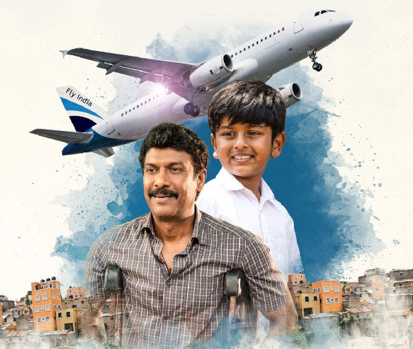 అంగవైకల్యంతో పేదరికంతో బాధపడుతున్న వీరయ్య (సముద్రఖని) కుమారుడు రాజు (మాస్టర్ ధృవన్). చిన్న వయసులోనే తల్లి మరణించడంతో వీరయ్య అల్లారుముద్దుగా పెంచుతూ ఉంటాడు. వీరయ్యకు తోడుగా అదే కాలనీలో ఆటో నడుపుతూ డేనియల్ (ధనరాజ్), చెప్పులు కుట్టుకునే వృత్తిలో కోటి (రాహుల్ రామకృష్ణ) ఉంటారు. ఊహ తెలిసినప్పటి నుంచి వీరయ్య కుమారుడు రాజు విమానాలు అంటే ఇష్టమే కాకుండా దానిలో ప్రయాణించాలనే కోరిక ఉంటుంది. విమానం ఎక్కించమని తండ్రి వీరయ్యను ప్రతిరోజు కోరుతూనే ఉంటాడు.