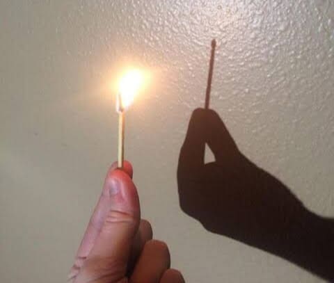 అగ్గిపుల్ల గాని కొవ్వొత్తిని గాని తీసుకొని వీటి వెలుతురు కంటే వాటి చుట్టూ ఉన్న వెలుతురు ఎక్కువగా ఉన్న ప్రదేశాన్ని ఎంచుకోవాలి. అంటే.. సూర్యుని వెలుతురులో ఈ రెండిటిని వెలిగిస్తే అప్పుడు వాటి మంట యొక్క నీడ మనకు స్పష్టంగా కనిపిస్తుంది. అప్పుడు ఈ రెండింటి వెలుతురు కంటే.. ఆ రెండు పదార్దాల చుట్టూ ఉన్న వెలుతురు రెట్టింపుగా ఉంటుంది. దానివల్ల ఈ మంట నీడ ఆ వెలుతురులో మనకు కనిపిస్తుంది.